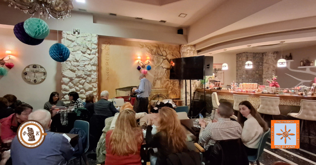 Για το επόμενο Φιλοσοφικό Καφενείο Θεσσαλονίκης, που θα διεξαχθεί στις 7 Μαρτίου 2026, στις 6.00μμ, στο Bazaari Cafe, θα υπάρξει σύντομα ανακοίνωση. Να είστε όλοι καλά!