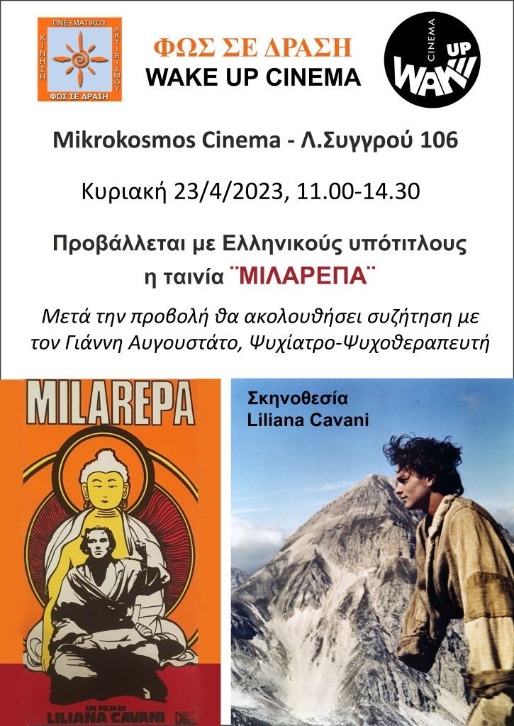 Ο Αφυπνιστικός Κινηματογράφος, της Κίνησης ΦΩΣ ΣΕ ΔΡΑΣΗ, πρόβαλε την Κυριακή 23/04/2023, την ταινία «Μιλαρέπα» της Liliana Cavani, με Ελληνικούς υπότιτλους στον κινηματογράφο Μικρόκοσμος.