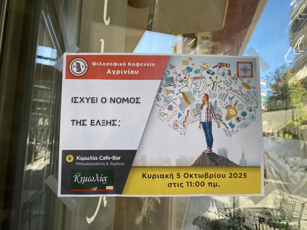 Πραγματοποιήθηκε την Κυριακή 5 Οκτωβρίου 2025, το πρώτο Φιλοσοφικό Καφενείο Αγρινίου της Κίνησης Πνευματικού Ακτιβισμού ΦΩΣ ΣΕ ΔΡΑΣΗ για τη χρονιά 2025-2026.