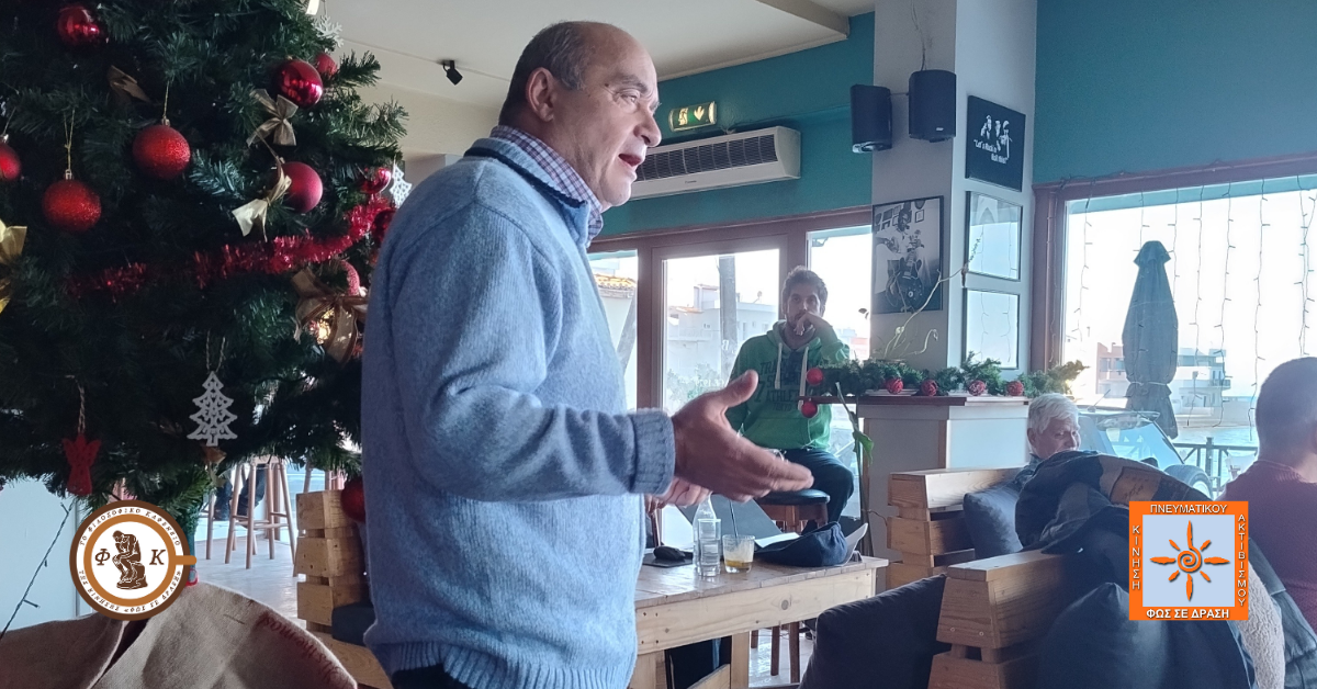 Πραγματοποιήθηκε την Κυριακή, 2 Νοεμβρίου 2025 το Φιλοσοφικό Καφενείο Αγρινίου. Το θέμα συζήτησης η «Τέχνη του Διαλόγου» συνδέθηκε αρκετά με την Παιδεία και την Αυτογνωσία.