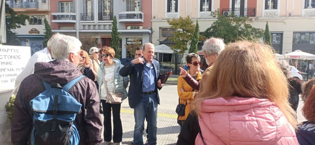 Ο περίπατος ακολούθησε τα χνάρια τού ποιητή που έζησε και συνέγραψε στην πόλη μας. Οδηγός και ξεναγός στο περίπατο ήταν ο κ. Μιλτιάδης Πολυβίου, προσωπικός φίλος του ποιητή και συγγραφέας του βιβλίου “Πραγματολογικά σχόλια για το έργο του Μανόλη Αναγνωστάκη”, εκδ. Πατάκη».