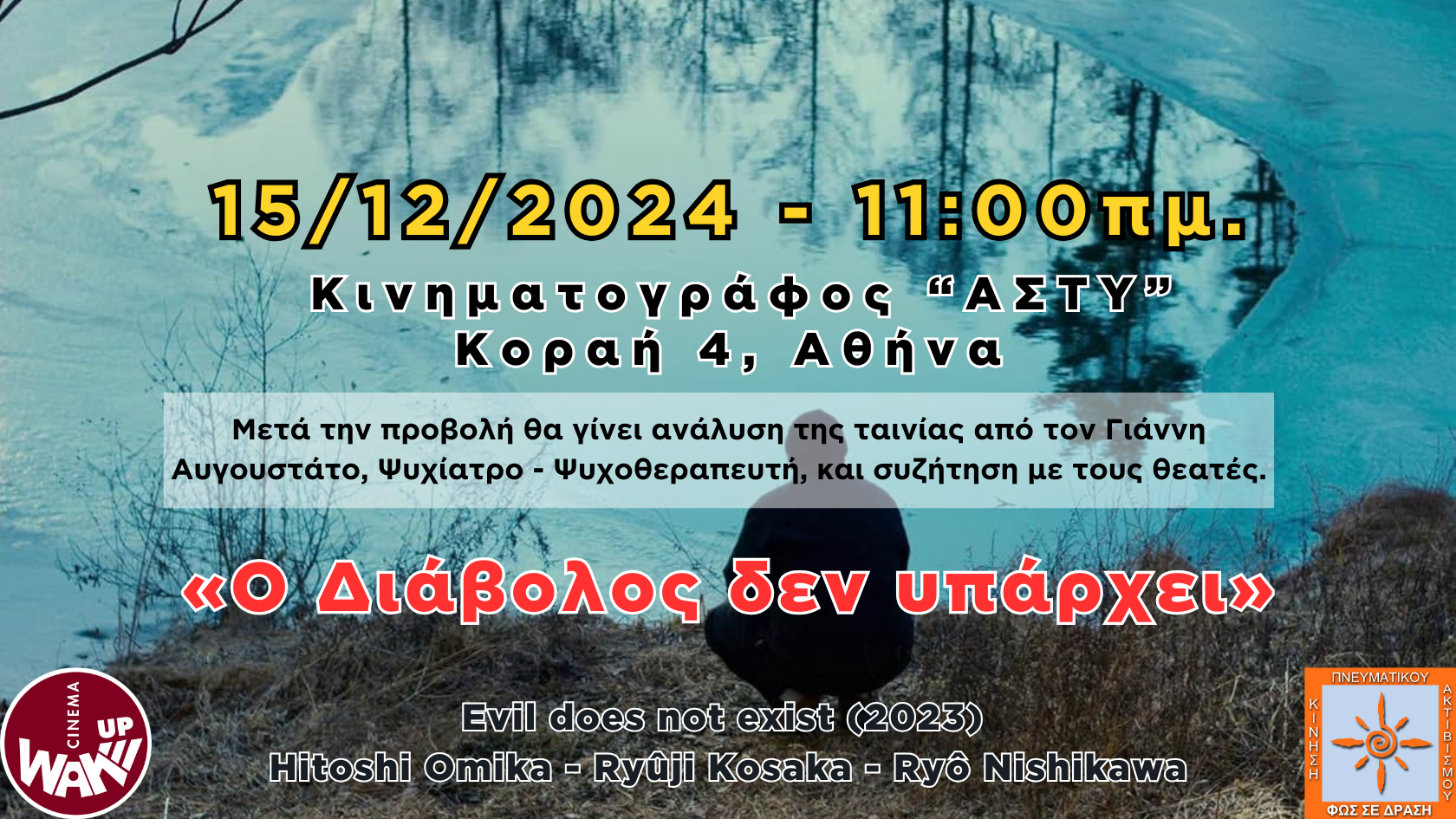 Ο Αφυπνιστικός Κινηματογράφος, της Κίνησης Πνευματικού Ακτιβισμού «ΦΩΣ ΣΕ ΔΡΑΣΗ», προβάλει την ιαπωνική δραματική ταινία «Ο Διάβολος δεν υπάρχει» (Evil Does Not Exist, 2023), σε σενάριο και σκηνοθεσία του Ryusuke Hamaguchi.