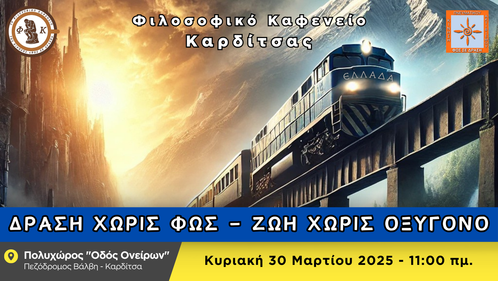 Στις πλατείες της αρχαίας Ελλάδος, οι φιλόσοφοι συζητούσαν για το νόημα της ζωής χρησιμοποιώντας δύο λέξεις: «τέλος» (στόχος) και «θεωρία» (στοχασμός). Σήμερα, σε έναν κόσμο που λατρεύει την ταχύτητα και τα αποτελέσματα, αξίζει να ρωτήσουμε:Ως επιβάτες στο ίδιο τρένο, ο προσωπικός με τον τελικό προορισμό, υπό ποιες συνθήκες ταυτίζονται;Φίλες και φίλοι του Φιλοσοφικού Καφενείου Καρδίτσας, […]