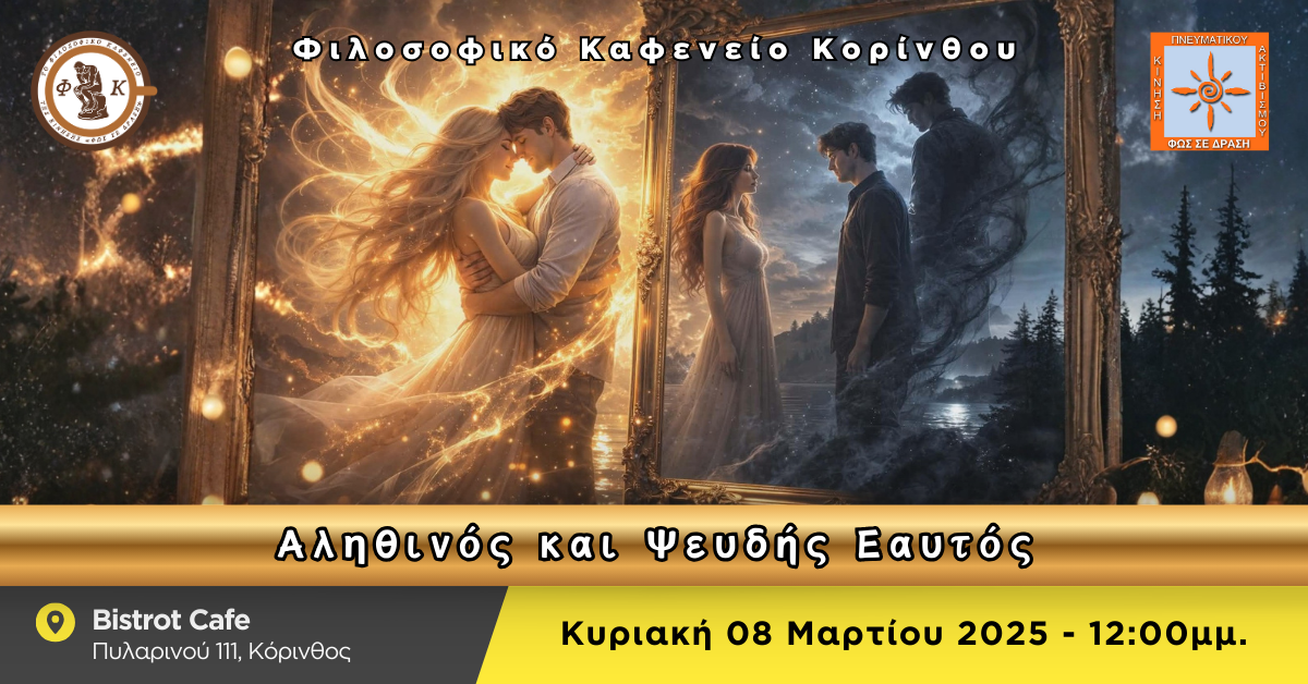 Το Φιλοσοφικό Καφενείο Κορίνθου μας προσκαλεί την Κυριακή 08/03/2026, στις 12:00 μμ. στο Bistrot Cafe (Πυλαρινού 111 – Κόρινθος), με θέμα συζήτησης: «Η σημασία της Φιλοσοφίας στην καθημερινότητά μας».Στο θέμα «Αληθινός και Ψευδής Εαυτός», καλό θα ήταν πρώτα, να θυμηθούμε τον εαυτό μας πριν από δέκα χρόνια και μετά να τον δούμε στο τώρα. Να τον θυμηθούμε πως ήταν χθες και […]