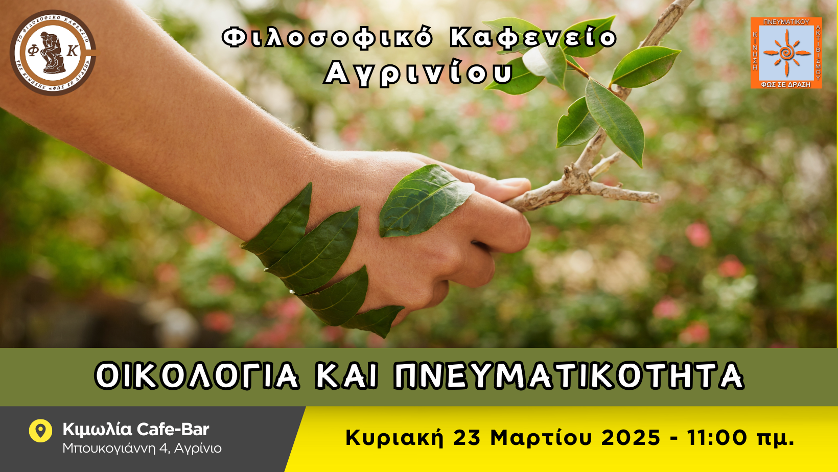 Το Φιλοσοφικό Καφενείο Αγρινίου μας προσκαλεί στην επόμενη συνάντηση που θα πραγματοποιηθεί την Κυριακή 23 Μαρτίου 2025 - 11:00 πμ., στο Κιμωλία Cafe-Bar (Mπουκογιάννη 4, Αγρίνιο), με το θέμα: Oικολογία και Πνευματικότητα.Θα συζητήσουμε για την οικολογική κρίση, προσεγγίζοντας το θέμα της Οικολογίας, σε συσχέτιση με τη συνειδησιακή ανασυγκρότηση της κοινωνίας. Όταν η θεώρηση της φύσης […]